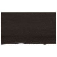Give a new life to your table with this wooden table top. It is an excellent solution for freshening up your table at home or in a commercial setting. Solid oak wood: The tabletop is made of solid oak wood, which is a beautiful natural material. Oak wood has a medium brown colour and a dense grain, contributing to its unique look.Versatile applications: The replacement table top can be combined with different bases according to your needs.Treated surface: The replacement board has been treated with dark paint, so it is ready for use as an additional finish is not required.Handmade with live edge: The DIY board is meticulously handcrafted, showcasing a live edge that adds to its natural charm. Every piece of shelf has its own unique character to display. The delivery is random, ensuring the exclusivity and individuality of your product. Good to know:As a natural product, wood may show knots and imperfections that we fill with black fillings to ensure a smooth appearance.
