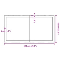 Give a new life to your table with this wooden table top. It is an excellent solution for freshening up your table at home or in a commercial setting. Durable construction: The tabletop is made of solid oak wood, which is a beautiful natural material. Oak wood has a medium brown colour and a dense grain, contributing to its unique look. Due to the hinge design, it can be folded and stored in narrow spaces.Versatile applications: The replacement table top can be combined with different bases according to your needs.Treated surface: The replacement board has been treated with dark paint, so it is ready for use as an additional finish is not required.Handmade with live edge: The DIY board is meticulously handcrafted, showcasing a live edge that adds to its natural charm. Due to that the knots, cracks, slightly curved shapes, and colour tones are part of the oak wood. Every piece has its own unique character to display. The delivery is random, ensuring the exclusivity and individuality of your product. Good to know:As a natural product, wood may show knots and imperfections that we fill with black fillings to ensure a smooth appearance.