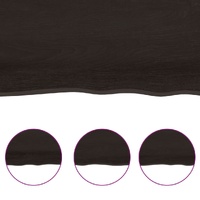 Give a new life to your table with this wooden table top. It is an excellent solution for freshening up your table at home or in a commercial setting. Durable construction: The tabletop is made of solid oak wood, which is a beautiful natural material. Oak wood has a medium brown colour and a dense grain, contributing to its unique look. Due to the hinge design, it can be folded and stored in narrow spaces.Versatile applications: The replacement table top can be combined with different bases according to your needs.Treated surface: The replacement board has been treated with dark paint, so it is ready for use as an additional finish is not required.Handmade with live edge: The DIY board is meticulously handcrafted, showcasing a live edge that adds to its natural charm. Due to that the knots, cracks, slightly curved shapes, and colour tones are part of the oak wood. Every piece has its own unique character to display. The delivery is random, ensuring the exclusivity and individuality of your product. Good to know:As a natural product, wood may show knots and imperfections that we fill with black fillings to ensure a smooth appearance.
