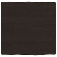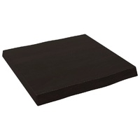 Give a new life to your table with this wooden table top. It is an excellent solution for freshening up your table at home or in a commercial setting. Solid oak wood: The tabletop is made of solid oak wood, which is a beautiful natural material. Oak wood has a medium brown colour and a dense grain, contributing to its unique look.Versatile applications: The replacement table top can be combined with different bases according to your needs.Treated surface: The replacement board has been treated with dark paint, so it is ready for use as an additional finish is not required.Handmade with live edge: The DIY board is meticulously handcrafted, showcasing a live edge that adds to its natural charm. Due to that the knots, cracks, slightly curved shapes, and colour tones are part of the oak wood. Every piece has its own unique character to display. The delivery is random, ensuring the exclusivity and individuality of your product. Good to know:As a natural product, wood may show knots and imperfections that we fill with black fillings to ensure a smooth appearance.