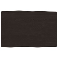 Give a new life to your table with this wooden table top. It is an excellent solution for freshening up your table at home or in a commercial setting. Solid oak wood: The tabletop is made of solid oak wood, which is a beautiful natural material. Oak wood has a medium brown colour and a dense grain, contributing to its unique look.Versatile applications: The replacement table top can be combined with different bases according to your needs.Treated surface: The replacement board has been treated with dark paint, so it is ready for use as an additional finish is not required.Handmade with live edge: The DIY board is meticulously handcrafted, showcasing a live edge that adds to its natural charm. Due to that the knots, cracks, slightly curved shapes, and colour tones are part of the oak wood. Every piece has its own unique character to display. The delivery is random, ensuring the exclusivity and individuality of your product. Good to know:As a natural product, wood may show knots and imperfections that we fill with black fillings to ensure a smooth appearance.