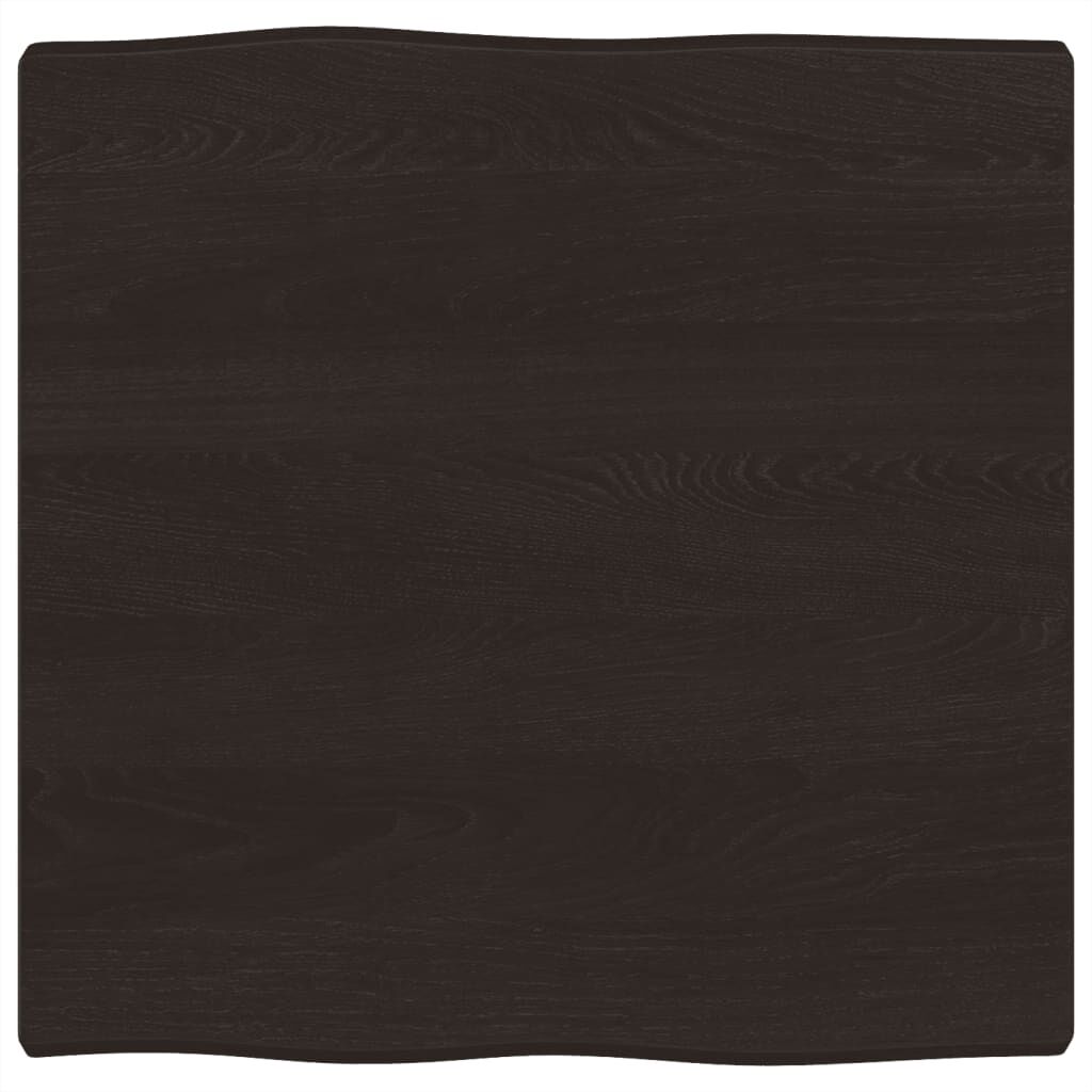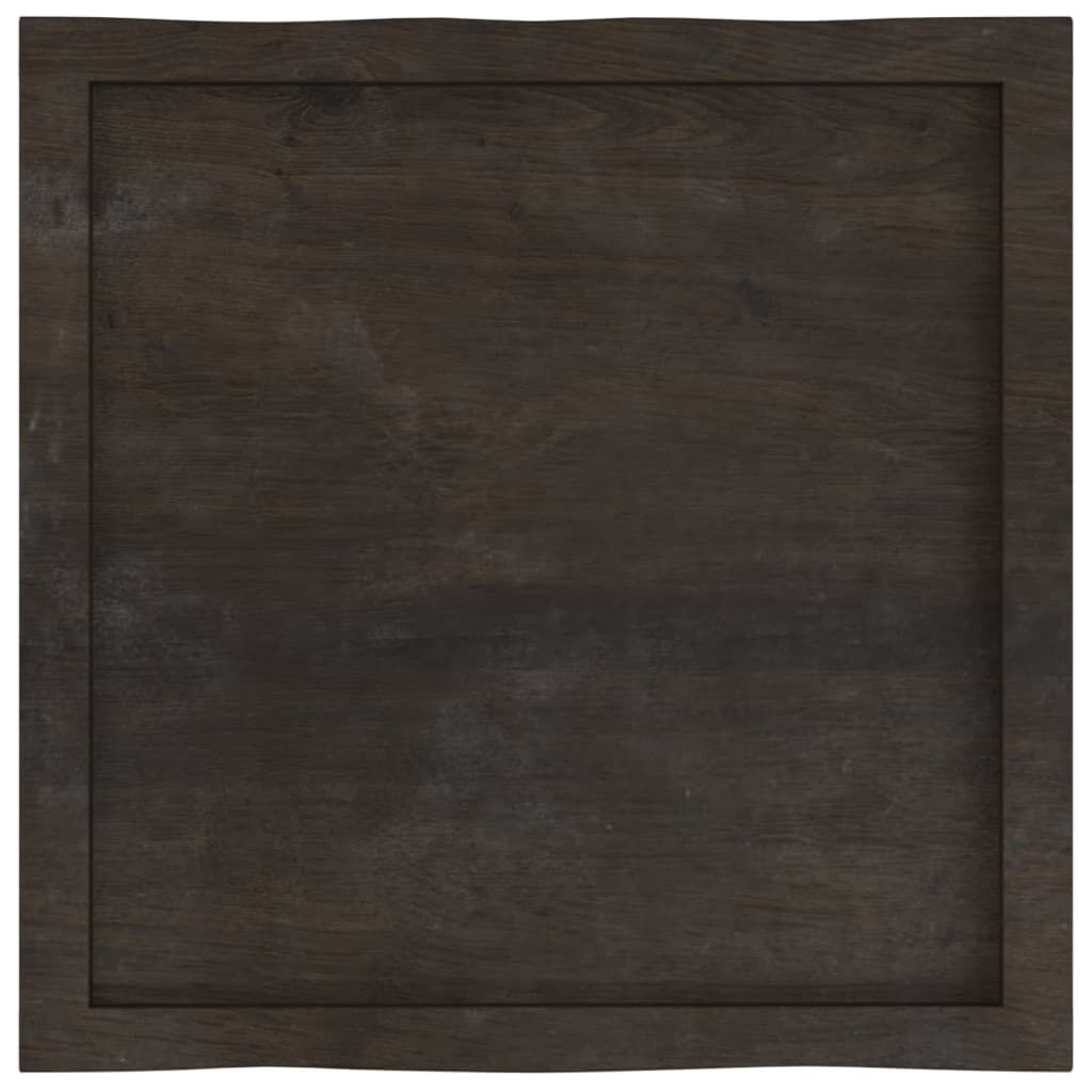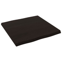 Give a new life to your table with this wooden table top. It is an excellent solution for freshening up your table at home or in a commercial setting. Solid oak wood: The tabletop is made of solid oak wood, which is a beautiful natural material. Oak wood has a medium brown colour and a dense grain, contributing to its unique look.Versatile applications: The replacement table top can be combined with different bases according to your needs.Treated surface: The replacement board has been treated with dark paint, so it is ready for use as an additional finish is not required.Handmade with live edge: The DIY board is meticulously handcrafted, showcasing a live edge that adds to its natural charm. Due to that the knots, cracks, slightly curved shapes, and colour tones are part of the oak wood. Every piece has its own unique character to display. The delivery is random, ensuring the exclusivity and individuality of your product. Good to know:As a natural product, wood may show knots and imperfections that we fill with black fillings to ensure a smooth appearance.