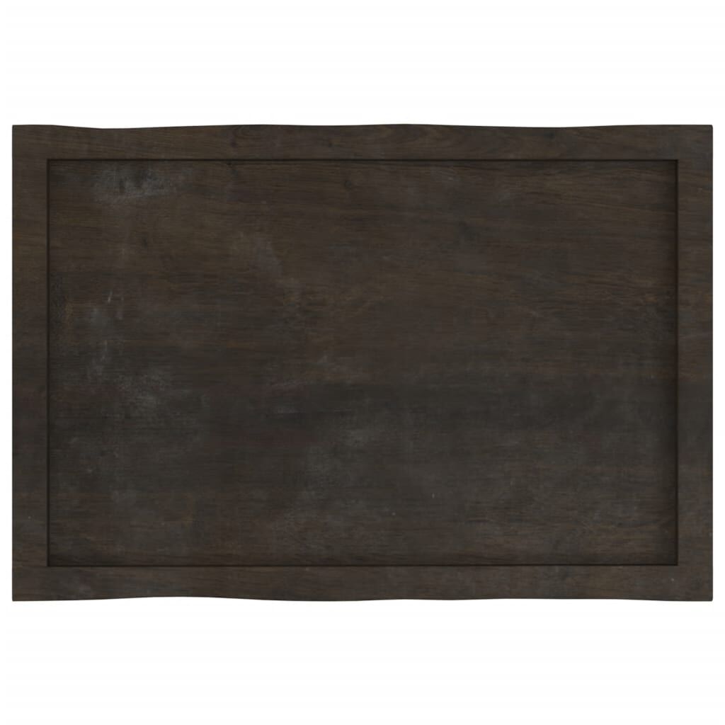 Give a new life to your table with this wooden table top. It is an excellent solution for freshening up your table at home or in a commercial setting. Solid oak wood: The tabletop is made of solid oak wood, which is a beautiful natural material. Oak wood has a medium brown colour and a dense grain, contributing to its unique look.Versatile applications: The replacement table top can be combined with different bases according to your needs.Treated surface: The replacement board has been treated with dark paint, so it is ready for use as an additional finish is not required.Handmade with live edge: The DIY board is meticulously handcrafted, showcasing a live edge that adds to its natural charm. Due to that the knots, cracks, slightly curved shapes, and colour tones are part of the oak wood. Every piece has its own unique character to display. The delivery is random, ensuring the exclusivity and individuality of your product. Good to know:As a natural product, wood may show knots and imperfections that we fill with black fillings to ensure a smooth appearance.