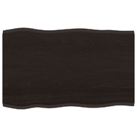 Give a new life to your table with this wooden table top. It is an excellent solution for freshening up your table at home or in a commercial setting. Solid oak wood: The tabletop is made of solid oak wood, which is a beautiful natural material. Oak wood has a medium brown colour and a dense grain, contributing to its unique look.Versatile applications: The replacement table top can be combined with different bases according to your needs.Treated surface: The replacement board has been treated with dark paint, so it is ready for use as an additional finish is not required.Handmade with live edge: The DIY board is meticulously handcrafted, showcasing a live edge that adds to its natural charm. Due to that the knots, cracks, slightly curved shapes, and colour tones are part of the oak wood. Every piece has its own unique character to display. The delivery is random, ensuring the exclusivity and individuality of your product. Good to know:As a natural product, wood may show knots and imperfections that we fill with black fillings to ensure a smooth appearance.