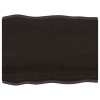 Give a new life to your table with this wooden table top. It is an excellent solution for freshening up your table at home or in a commercial setting. Solid oak wood: The tabletop is made of solid oak wood, which is a beautiful natural material. Oak wood has a medium brown colour and a dense grain, contributing to its unique look.Versatile applications: The replacement table top can be combined with different bases according to your needs.Treated surface: The replacement board has been treated with dark paint, so it is ready for use as an additional finish is not required.Handmade with live edge: The DIY board is meticulously handcrafted, showcasing a live edge that adds to its natural charm. Due to that the knots, cracks, slightly curved shapes, and colour tones are part of the oak wood. Every piece has its own unique character to display. The delivery is random, ensuring the exclusivity and individuality of your product. Good to know:As a natural product, wood may show knots and imperfections that we fill with black fillings to ensure a smooth appearance.
