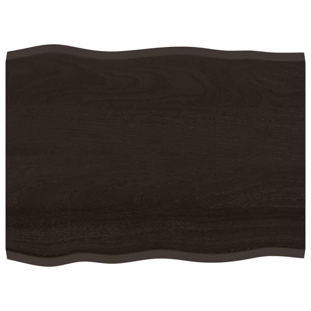 Give a new life to your table with this wooden table top. It is an excellent solution for freshening up your table at home or in a commercial setting. Solid oak wood: The tabletop is made of solid oak wood, which is a beautiful natural material. Oak wood has a medium brown colour and a dense grain, contributing to its unique look.Versatile applications: The replacement table top can be combined with different bases according to your needs.Treated surface: The replacement board has been treated with dark paint, so it is ready for use as an additional finish is not required.Handmade with live edge: The DIY board is meticulously handcrafted, showcasing a live edge that adds to its natural charm. Due to that the knots, cracks, slightly curved shapes, and colour tones are part of the oak wood. Every piece has its own unique character to display. The delivery is random, ensuring the exclusivity and individuality of your product. Good to know:As a natural product, wood may show knots and imperfections that we fill with black fillings to ensure a smooth appearance.