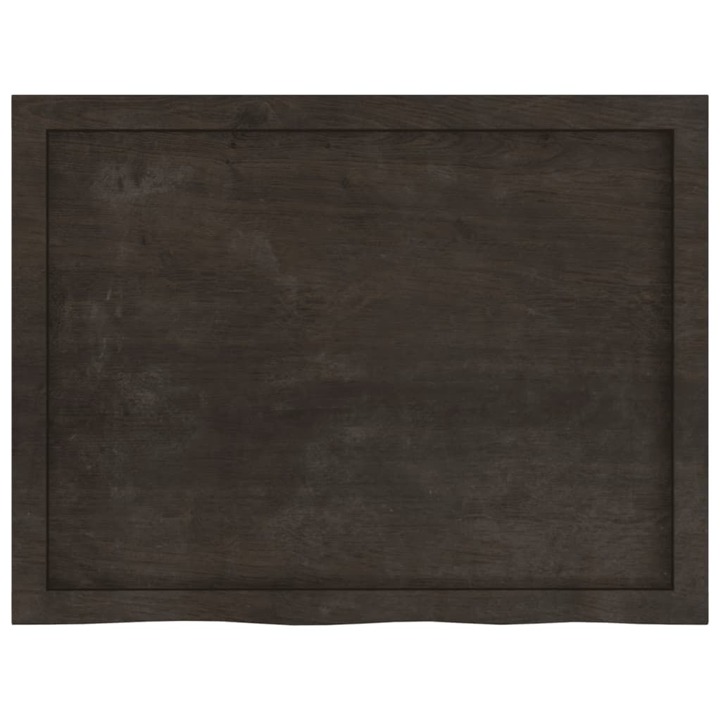 Give a new life to your table with this wooden table top. It is an excellent solution for freshening up your table at home or in a commercial setting. Solid oak wood: The tabletop is made of solid oak wood, which is a beautiful natural material. Oak wood has a medium brown colour and a dense grain, contributing to its unique look.Versatile applications: The replacement table top can be combined with different bases according to your needs.Treated surface: The replacement board has been treated with dark paint, so it is ready for use as an additional finish is not required.Handmade with live edge: The DIY board is meticulously handcrafted, showcasing a live edge that adds to its natural charm. Every piece of shelf has its own unique character to display. The delivery is random, ensuring the exclusivity and individuality of your product. Good to know:As a natural product, wood may show knots and imperfections that we fill with black fillings to ensure a smooth appearance.