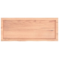 Give a new life to your table with this wooden table top. It is an excellent solution for freshening up your table at home or in a commercial setting. Solid oak wood: The tabletop is made of solid oak wood, which is a beautiful natural material. Oak wood has a medium brown colour and a dense grain, contributing to its unique look.Versatile applications: The replacement table top can be combined with different bases according to your needs.Treated surface: The replacement board has been varnished so it is ready for use as an additional finish is not required.Handmade with live edge: The DIY board is meticulously handcrafted, showcasing a live edge that adds to its natural charm. Every piece of shelf has its own unique character to display. The delivery is random, ensuring the exclusivity and individuality of your product. Good to know:As a natural product, wood may show knots and imperfections that we fill with black fillings to ensure a smooth appearance.