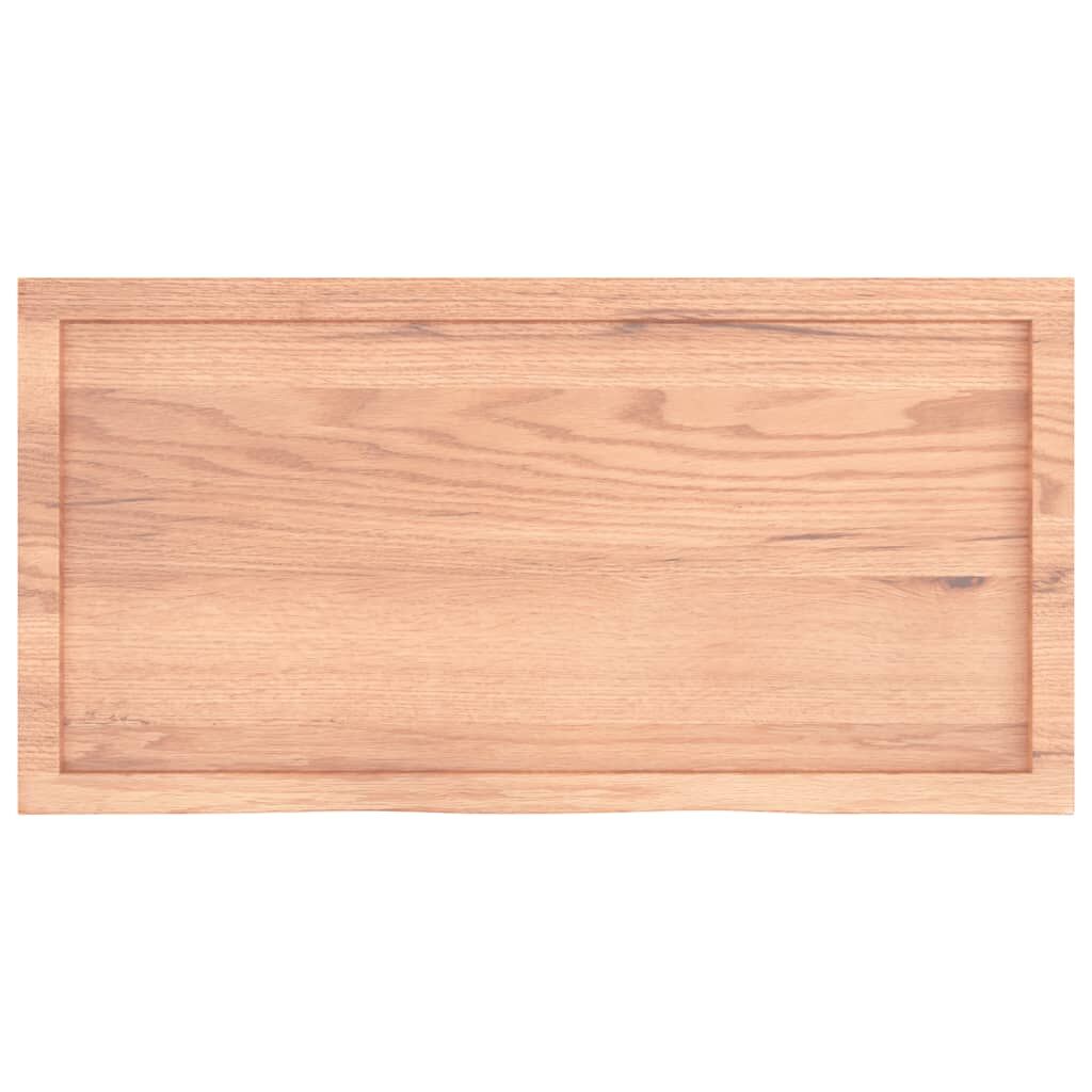 Give a new life to your table with this wooden table top. It is an excellent solution for freshening up your table at home or in a commercial setting. Solid oak wood: The tabletop is made of solid oak wood, which is a beautiful natural material. Oak wood has a medium brown colour and a dense grain, contributing to its unique look.Versatile applications: The replacement table top can be combined with different bases according to your needs.Treated surface: The replacement board has been varnished so it is ready for use as an additional finish is not required.Handmade with live edge: The DIY board is meticulously handcrafted, showcasing a live edge that adds to its natural charm. Every piece of shelf has its own unique character to display. The delivery is random, ensuring the exclusivity and individuality of your product. Good to know:As a natural product, wood may show knots and imperfections that we fill with black fillings to ensure a smooth appearance.