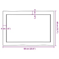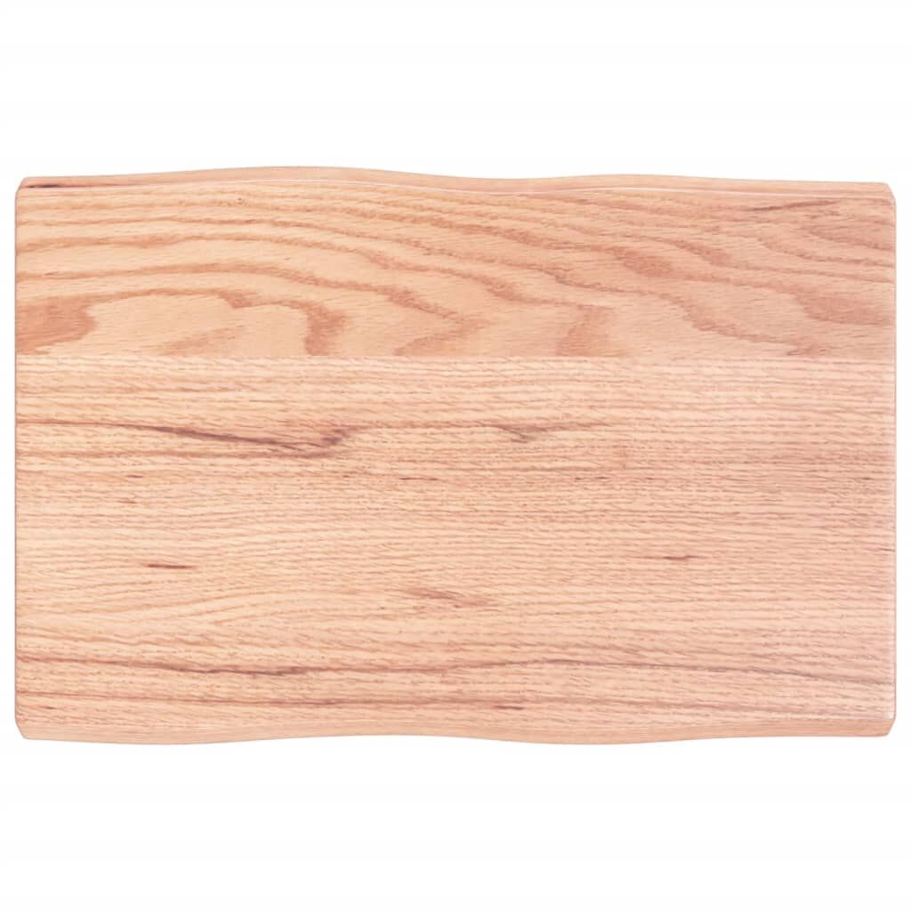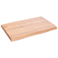Give a new life to your table with this wooden table top. It is an excellent solution for freshening up your table at home or in a commercial setting. Solid oak wood: The tabletop is made of solid oak wood, which is a beautiful natural material. Oak wood has a medium brown colour and a dense grain, contributing to its unique look.Versatile applications: The replacement table top can be combined with different bases according to your needs.Treated surface: The replacement board has been varnished so it is ready for use as an additional finish is not required.Handmade with live edge: The DIY board is meticulously handcrafted, showcasing a live edge that adds to its natural charm. Due to that the knots, cracks, slightly curved shapes, and colour tones are part of the oak wood. Every piece has its own unique character to display. The delivery is random, ensuring the exclusivity and individuality of your product. Good to know:As a natural product, wood may show knots and imperfections that we fill with black fillings to ensure a smooth appearance.
