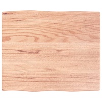 Give a new life to your table with this wooden table top. It is an excellent solution for freshening up your table at home or in a commercial setting. Solid oak wood: The tabletop is made of solid oak wood, which is a beautiful natural material. Oak wood has a medium brown colour and a dense grain, contributing to its unique look.Versatile applications: The replacement table top can be combined with different bases according to your needs.Treated surface: The replacement board has been varnished so it is ready for use as an additional finish is not required.Handmade with live edge: The DIY board is meticulously handcrafted, showcasing a live edge that adds to its natural charm. Due to that the knots, cracks, slightly curved shapes, and colour tones are part of the oak wood. Every piece has its own unique character to display. The delivery is random, ensuring the exclusivity and individuality of your product. Good to know:As a natural product, wood may show knots and imperfections that we fill with black fillings to ensure a smooth appearance.