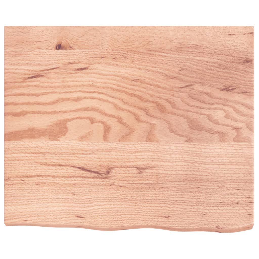 Give a new life to your table with this wooden table top. It is an excellent solution for freshening up your table at home or in a commercial setting. Solid oak wood: The tabletop is made of solid oak wood, which is a beautiful natural material. Oak wood has a medium brown colour and a dense grain, contributing to its unique look.Versatile applications: The replacement table top can be combined with different bases according to your needs.Treated surface: The replacement board has been varnished so it is ready for use as an additional finish is not required.Handmade with live edge: The DIY board is meticulously handcrafted, showcasing a live edge that adds to its natural charm. Every piece of shelf has its own unique character to display. The delivery is random, ensuring the exclusivity and individuality of your product. Good to know:As a natural product, wood may show knots and imperfections that we fill with black fillings to ensure a smooth appearance.