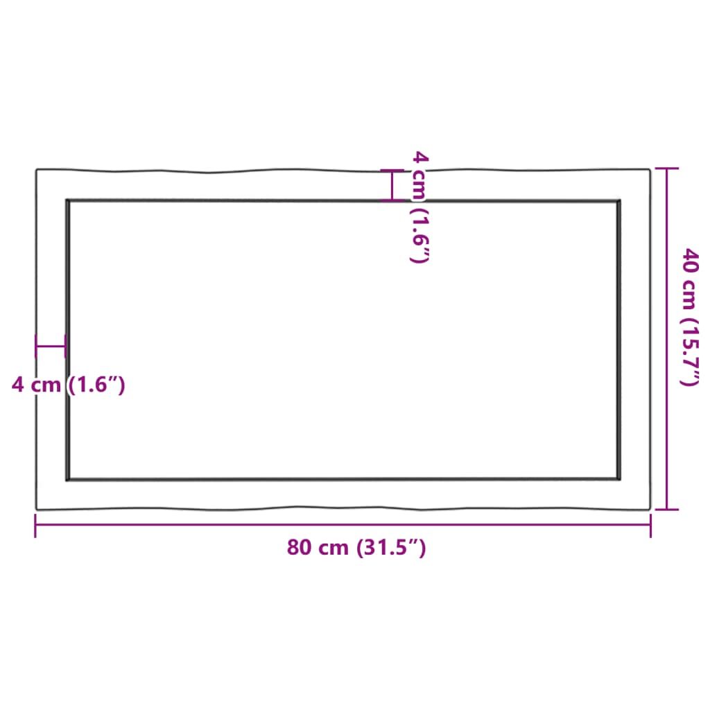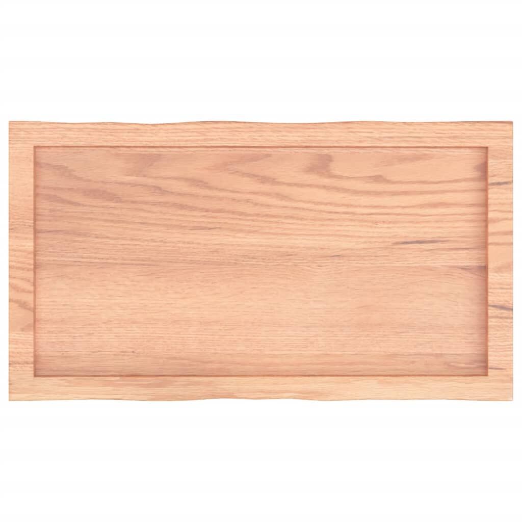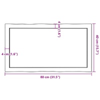 Give a new life to your table with this wooden table top. It is an excellent solution for freshening up your table at home or in a commercial setting. Solid oak wood: The tabletop is made of solid oak wood, which is a beautiful natural material. Oak wood has a medium brown colour and a dense grain, contributing to its unique look.Versatile applications: The replacement table top can be combined with different bases according to your needs.Treated surface: The replacement board has been varnished so it is ready for use as an additional finish is not required.Handmade with live edge: The DIY board is meticulously handcrafted, showcasing a live edge that adds to its natural charm. Due to that the knots, cracks, slightly curved shapes, and colour tones are part of the oak wood. Every piece has its own unique character to display. The delivery is random, ensuring the exclusivity and individuality of your product. Good to know:As a natural product, wood may show knots and imperfections that we fill with black fillings to ensure a smooth appearance.
