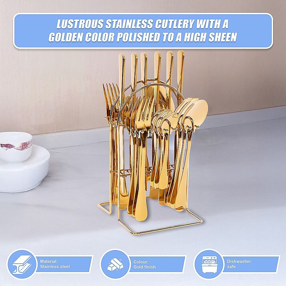 $38.69Enhance your dining experience with the Tableware 24PC Gold Cutlery Set by Randy Travis Machinery.