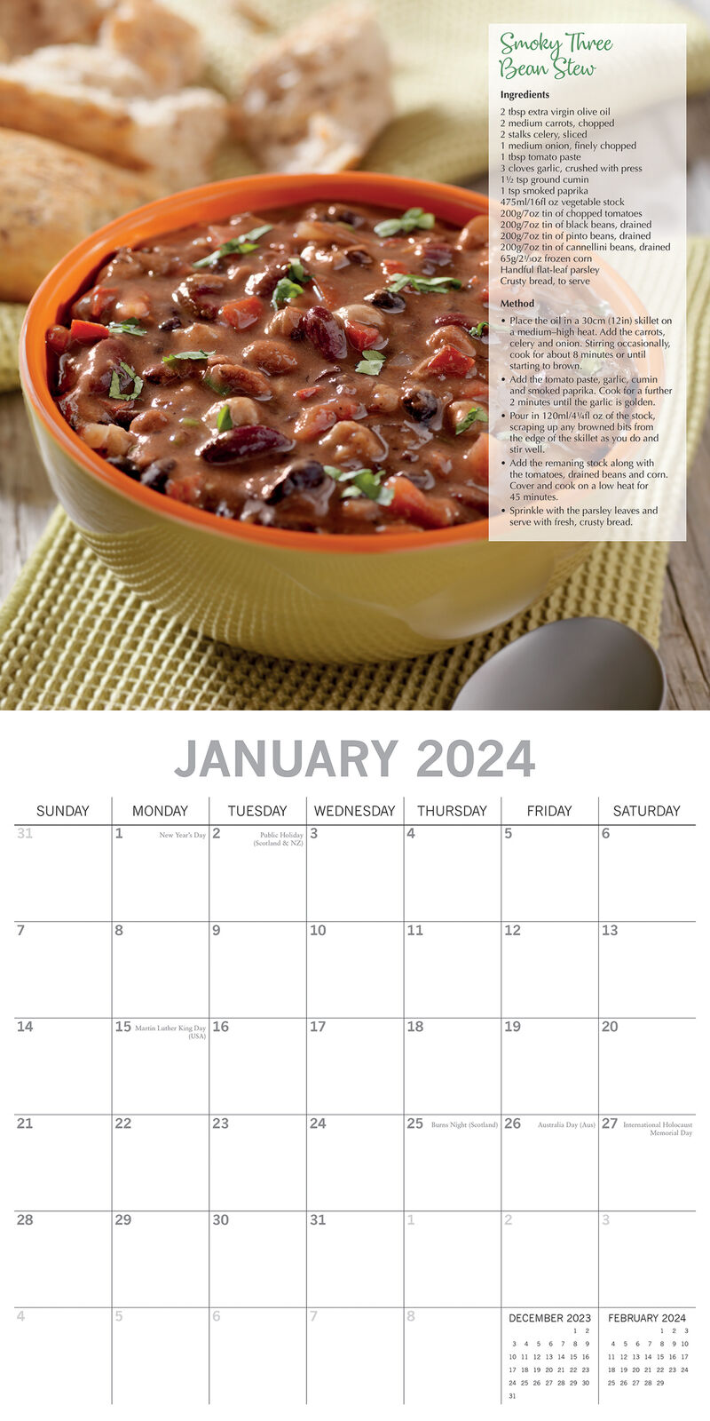 Tasty Vegan Recipes - 2024 Square Wall Calendar 16 Months Food Planner Xmas Gift