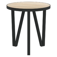 This industrial-style tea table adds a touch of contemporary style to your home decor. It can also be used as coffee table, side table or end table. Made of MDF and powder-coated steel, the side table is sturdy and durable. The solid round tabletop provides a secure surface to keep your various items within reach. Additionally, it is easy to clean with a damp cloth. Relax and enjoy entertaining with your family and friends around this unique tea table!