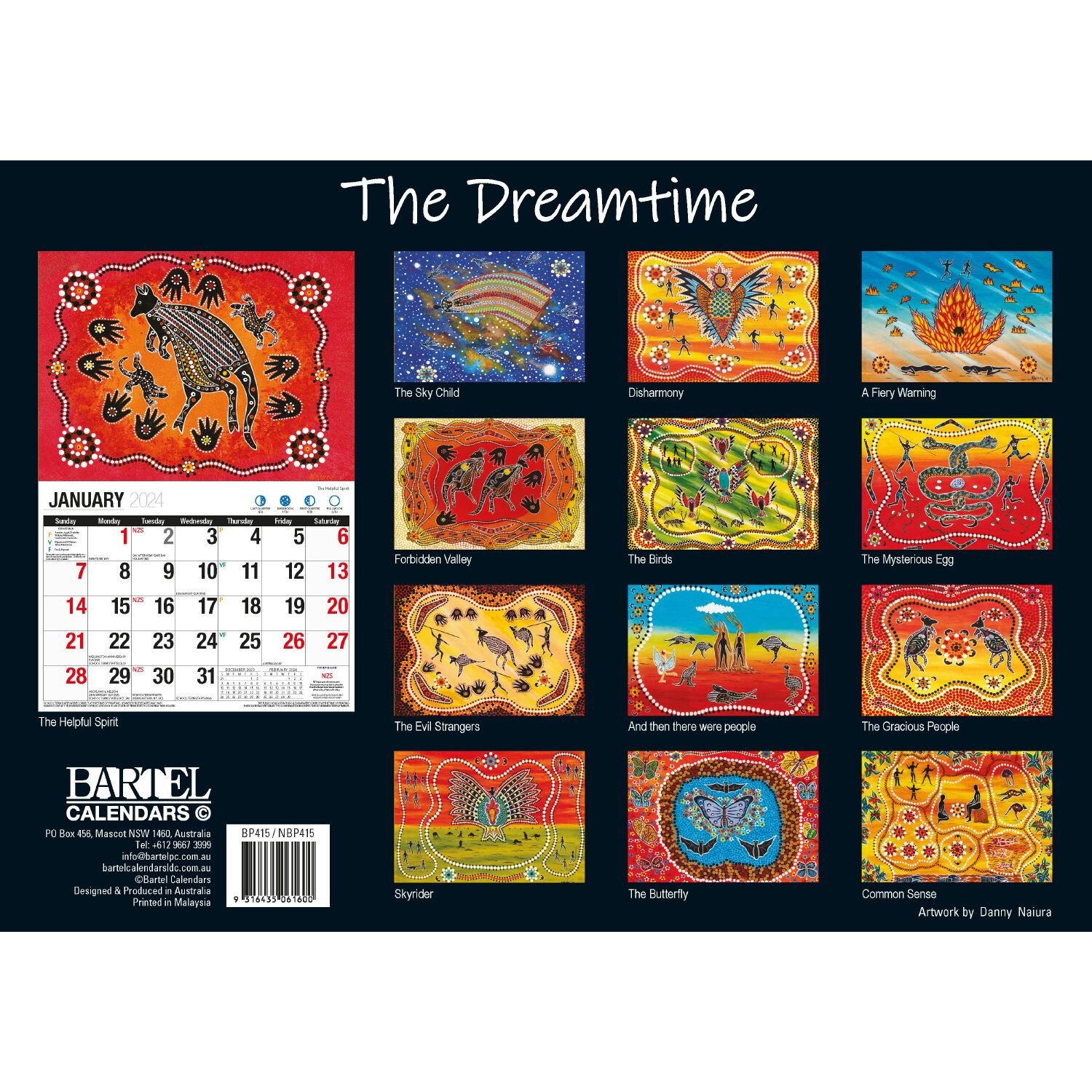 Explore the rich Aboriginal art and culture with this The Dreamtime calendar, offering 16 months of captivating Dreamtime artwork to inspire your 2024. Brand New Rectangle Wall Calendars with Beautifully design, a front and back cover, well Packed for Safe Delivery.