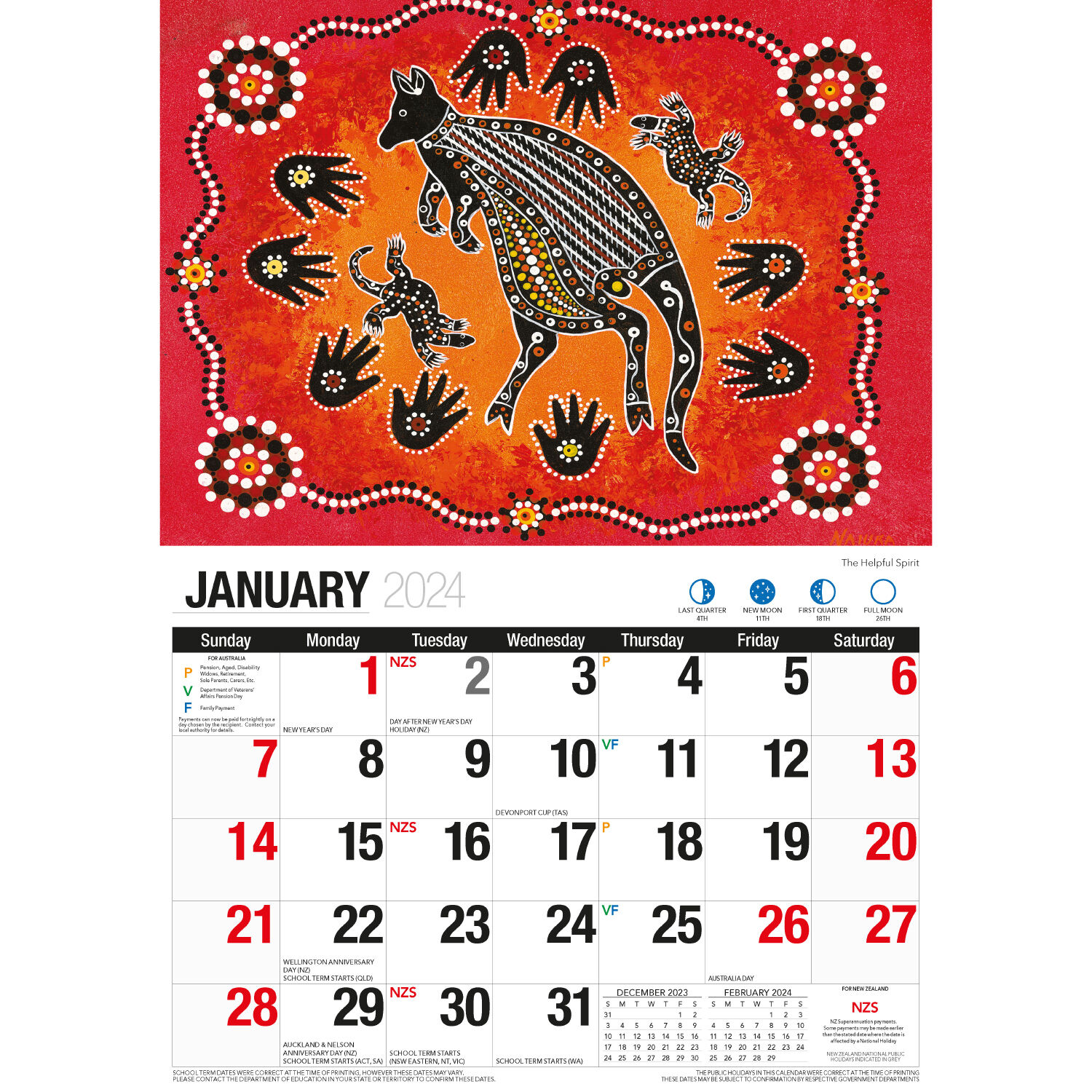 The Dreamtime - 2024 Rectangle Wall Calendar 16 Months Aboriginal Art New Year