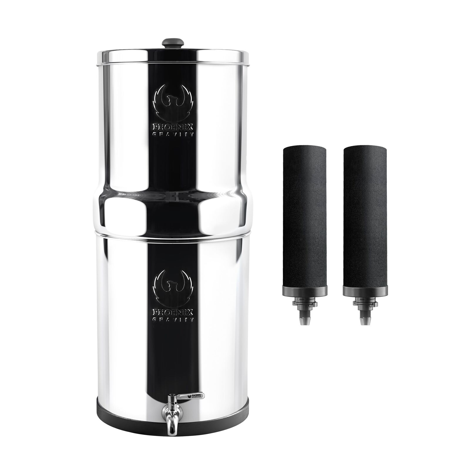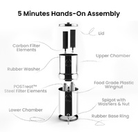 Advanced and sustainable gravity filtration. Removes up to 99.9% of contaminants including microplastics, bacteria, heavy metals PFAS. Retains 100% of minerals.