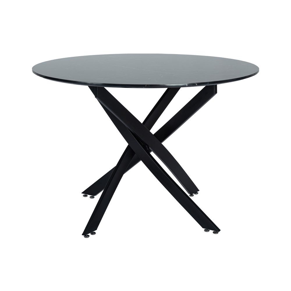 This table is made of solid MDF desktop, which is painted with elegant black marble design with white texture. This table is 110cm in diameter and can comfortably accommodate 4 people. The 20mm thick table top keeps it slim, but it is strong enough to hold all your favorite dishes.