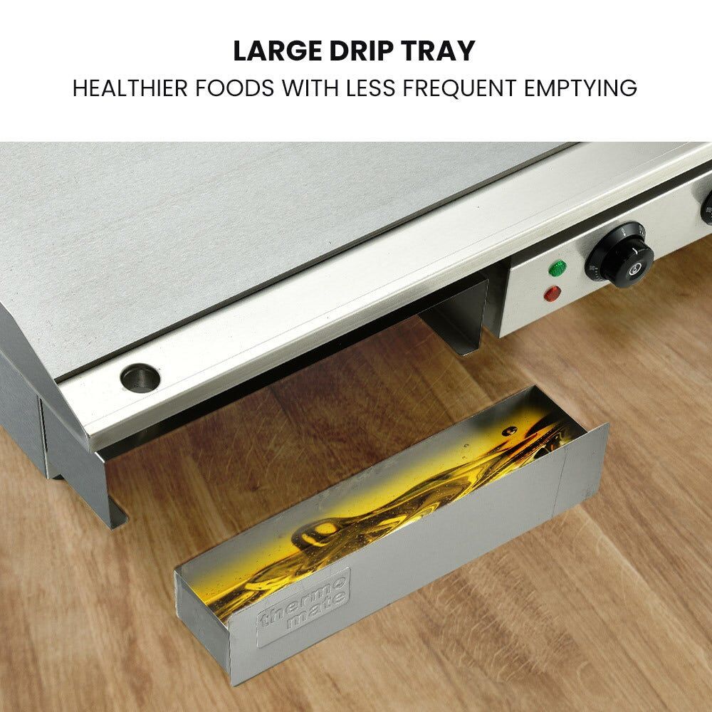 $362.83The Thermomate Commercial-grade Electric Griddle is the perfect countertop cooking solution for busy food vendors. A comprehensive heat element is powered by 4.4kW of heating power via the convenience of two 10A plugs, so you can use it anywhere. With dual zone temperature control from 50 to 300C, it offers the versatility to cook everything from steak to stir-frys to pancakes.