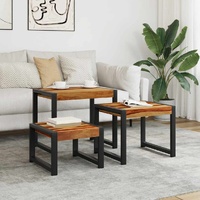 $228.41This vintage-style set of 3 nesting tables, made of solid reclaimed wood, will make a timeless addition to your home. These wooden tables can be used as coffee tables, couch tables, living room tables, side tables, nightstands, telephone stands, etc. Thanks to the strong steel frame, the tables are very steady and durable. Being stackable, these tables save a lot of space when not in use. The tables are made of recycled wood, which means every piece of furniture is unique and slightly different from the next. Furniture made of reclaimed wood has the characteristics of different woods, like teakwood, acacia, mango wood, saal wood, etc. Reclaimed wood is solid, stable, durable, and beautiful. Signs of wear and visible grain structure give each piece its own history and unique look. The table set is fully handmade, and the craftsmanship adds to its spectacular retro style. Every step of the process is carried out with the greatest care, be it recombining, polishing, painting or waxing. Important note: Colours vary from piece to piece, making each of our tables unique; the delivery is random.
