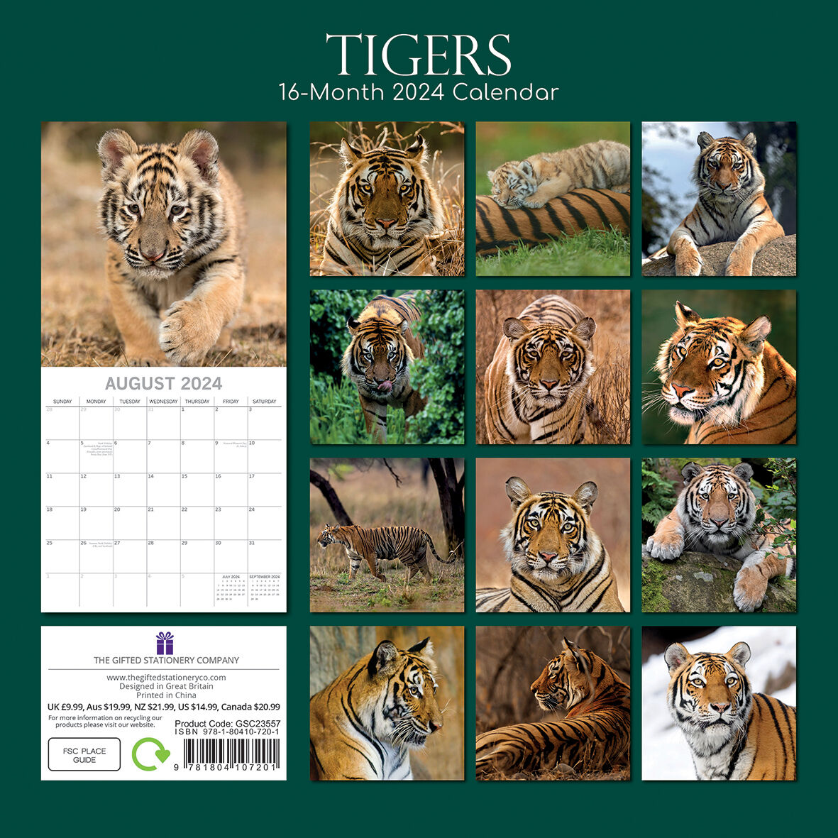 Tigers are fearsome, powerful, and oh so beautiful! Twelve dazzling, full color photographs portray these creatures in all their feline magnificence. This calendar is perfect as décor in your home, kitchen, or office and easily helps to keep track of important dates, contacts, and other events at a glance. Each calendar month is easy to glance at and see what responsibilities you have coming up, so make sure you stay organized through the year! Personalization is easy with different colors for appointments and trips, add stickers or stickie notes for a quick reference, or create your own system of symbols and abbreviations. Brand New Calendar with Beautifully design, Sealed in Original Packaging, each calendar includes a large grid running from Sunday to Saturday. Publisher: The Gifted Stationery Co. Dimensions: 30cm (w) x 30cm (h) closed; 30cm (w) x 60cm (h) opened Time Span: 16 months (January to December 2024 monthly, September to December 2023 on-a-page) 2024 Square Wall Calendar featuring beautiful colour photographed images for every month of the year. Like most Wall calendars, this one comes with: