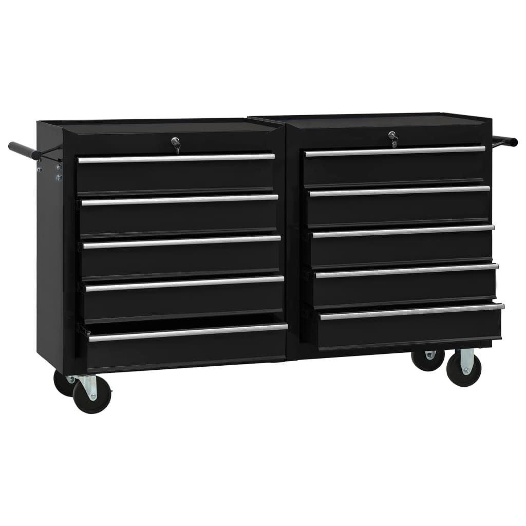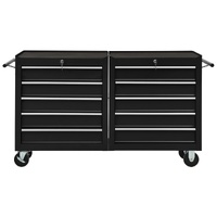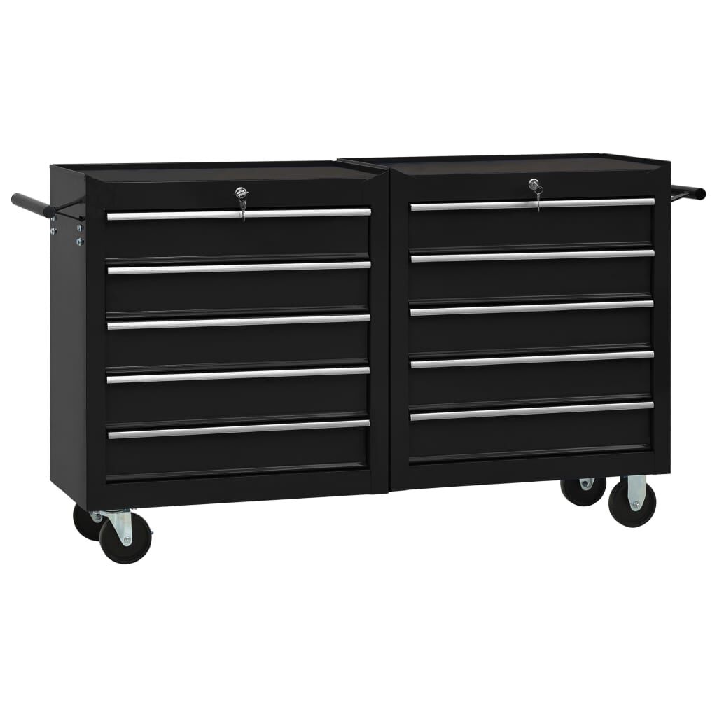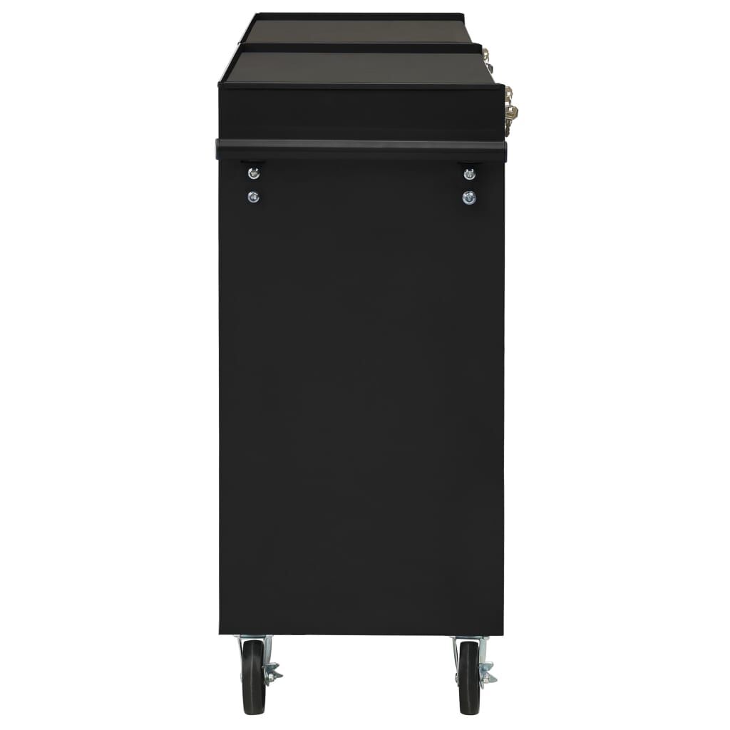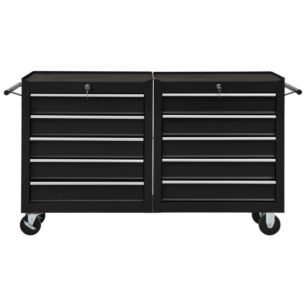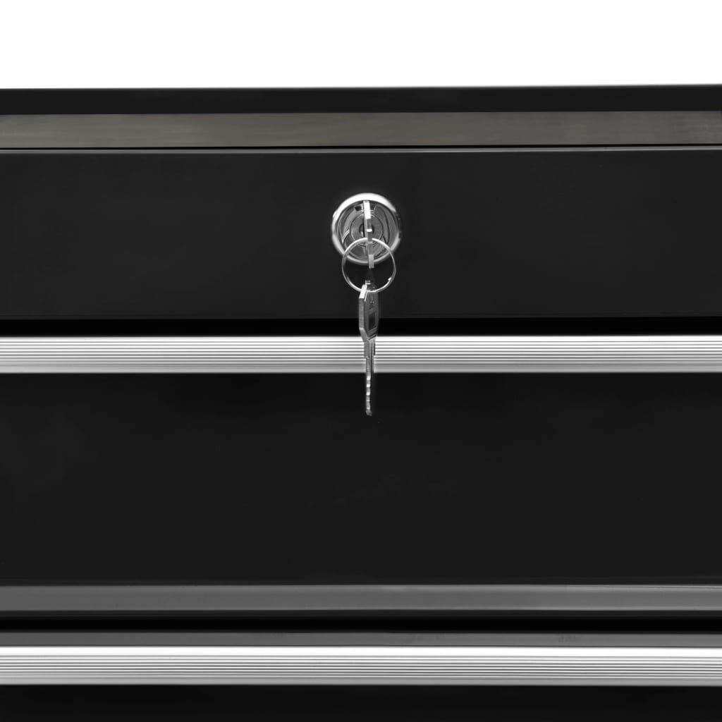 Use this spacious and flexible tool trolley with 5 sliding drawers to store and organise your tools. Durable material: Made of sturdy steel, the tool chest has a robust and durable construction. Lockable: Thanks to the integrated lock, drawers can be locked at once to prevent them from opening accidentally when the tool cabinet is moved. Non-slip design: Each drawer has a non-slip bottom lining to keep your tools in place. Robust countertop: The robust countertop of the tool cart is a great spot to keep frequently used tools within reach. Convenient design: With four swivel castors, two of which have brakes, the workshop trolley can be moved around easily. In addition, there are 2 convenient side handles for pushing the trolley. Good to know:Delivery includes only one tool trolley.