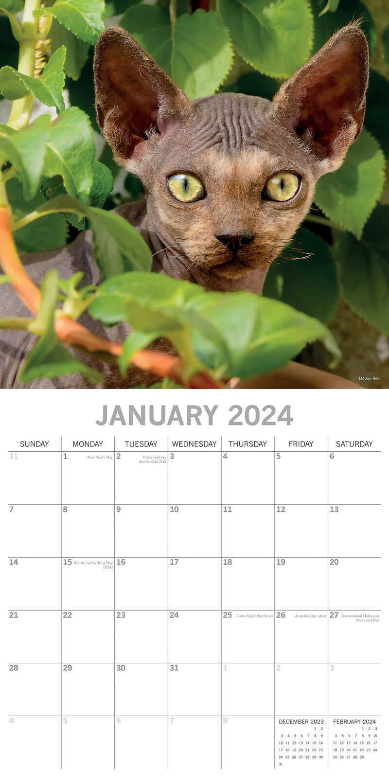 Top Cats - 2024 Square Wall Calendar Pets Animals 16 Months Premium Planner Gift