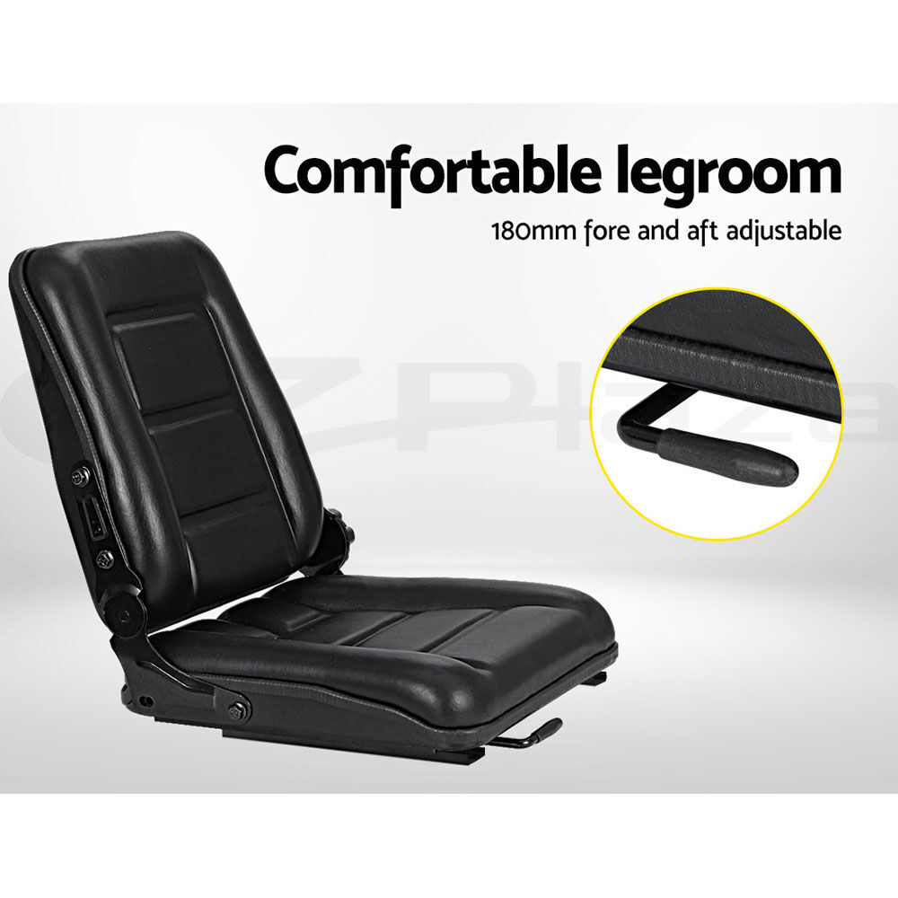 $88.35The perfect upgrade to your tractor, excavator, or another four-wheeled helper, the Giantz Universal Tractor Seat will keep you company through long days of hard work. Made from a sturdy steel frame, soft padded seating and quality PU-leather, this seat is as hardworking as you are. It can easily be adjusted using the side knob and can be pushed forward 45 degrees and back 150 degrees for a wide range of seating positions. The double steel slide track makes it easy to put the seat in position. The Giantz Universal Tractor Seat will keep you company through the hard days and nights and is suitable for tractors, forklifts, excavators, sweepers, lawn mowers, and more. Buy yours today.