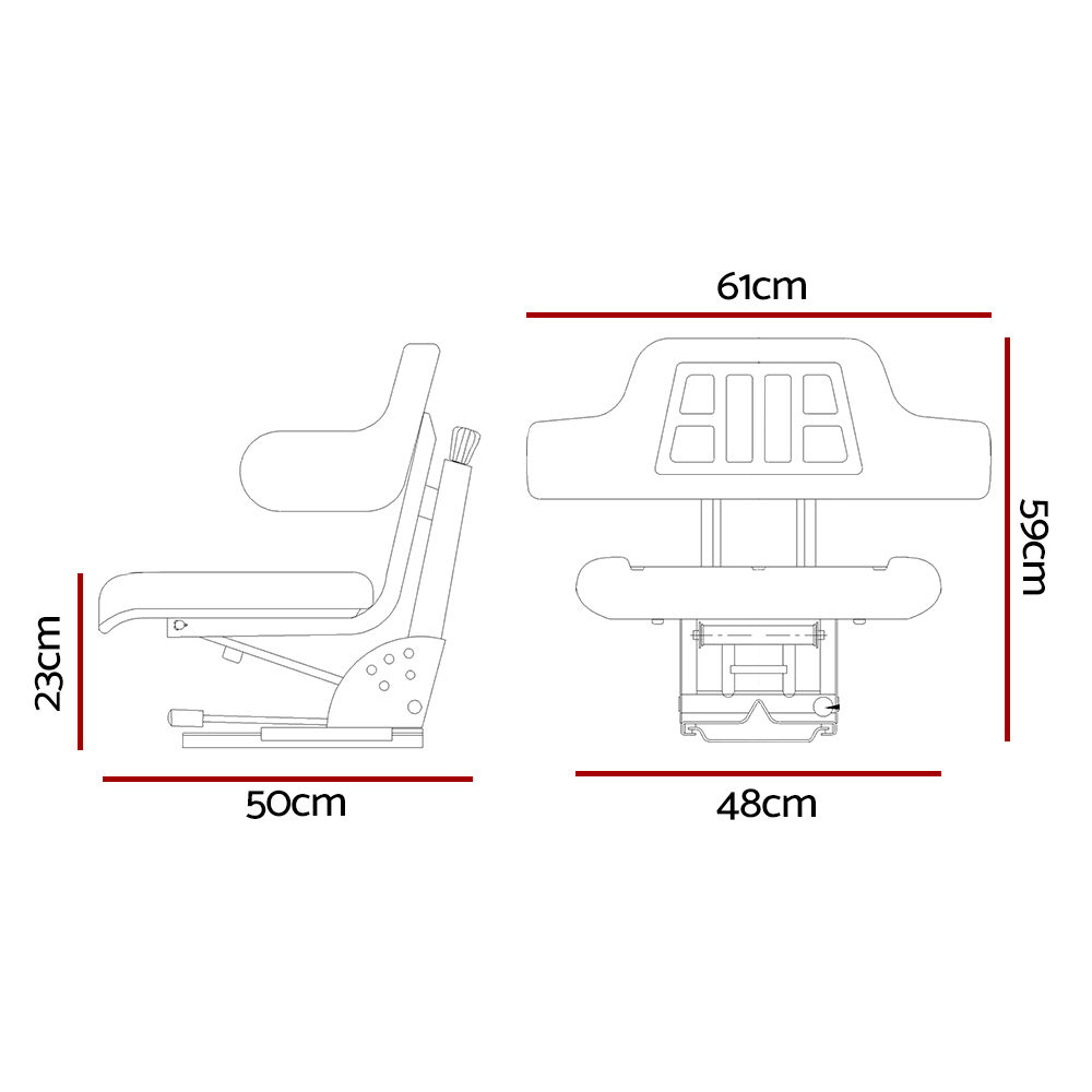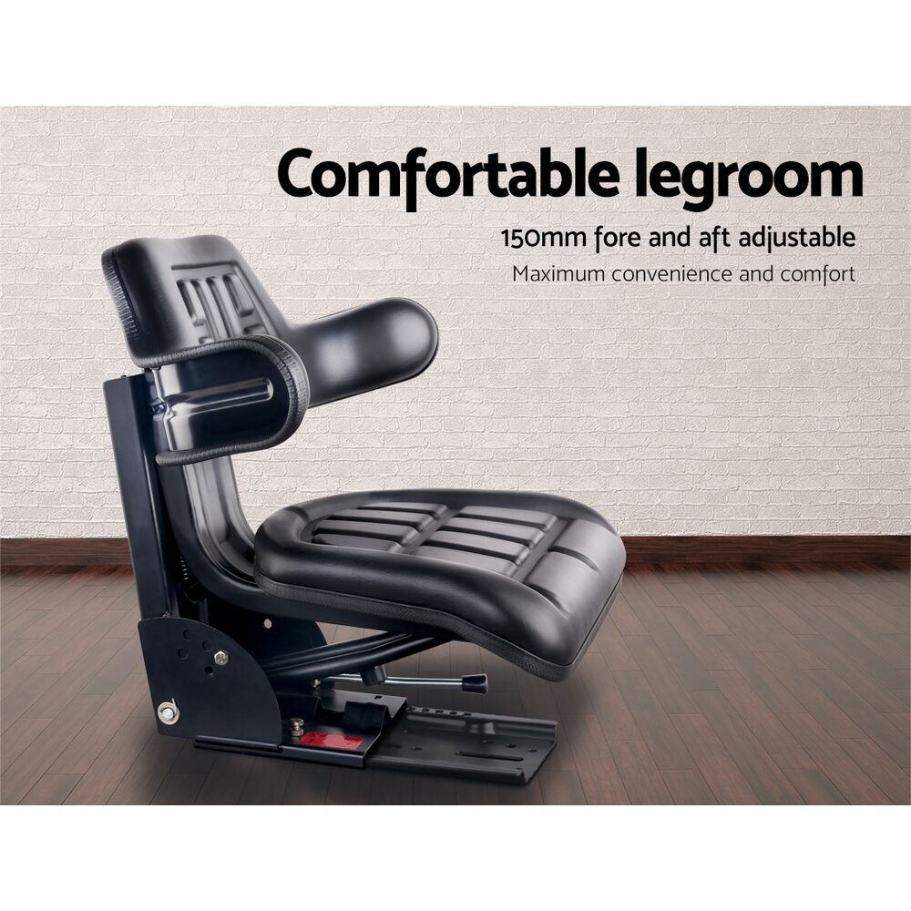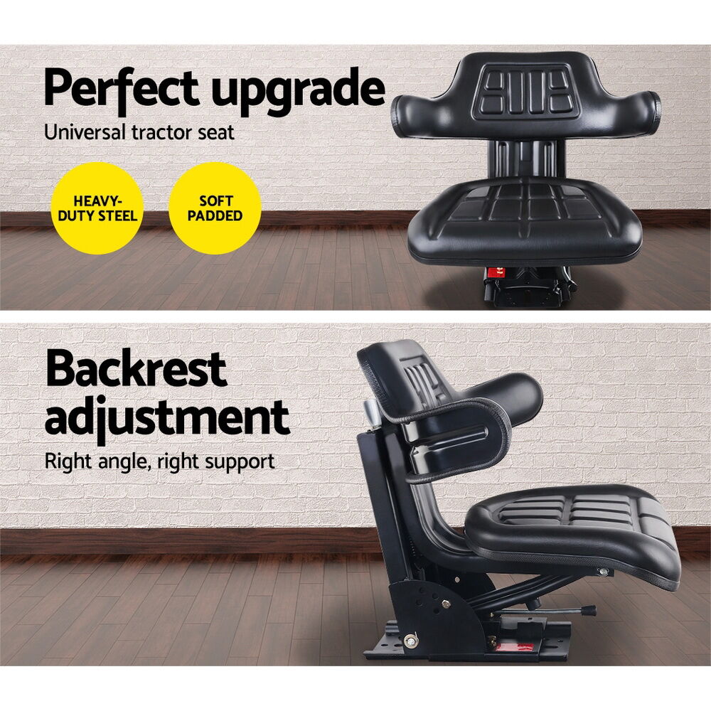 Our Tractor Seat comes with all the necessary features that make it a better working experience for you: adjustable weight suspension to accommodate weights between 50 and 130kg, adjustable backrest, handy armrests, fore and aft sliding track adjustment of up to 150mm, and thick padded seat upholstered in high quality black PU leather for extra durability. Everything is designed to take into account your requirements for a seat that matches your work environment perfectly.