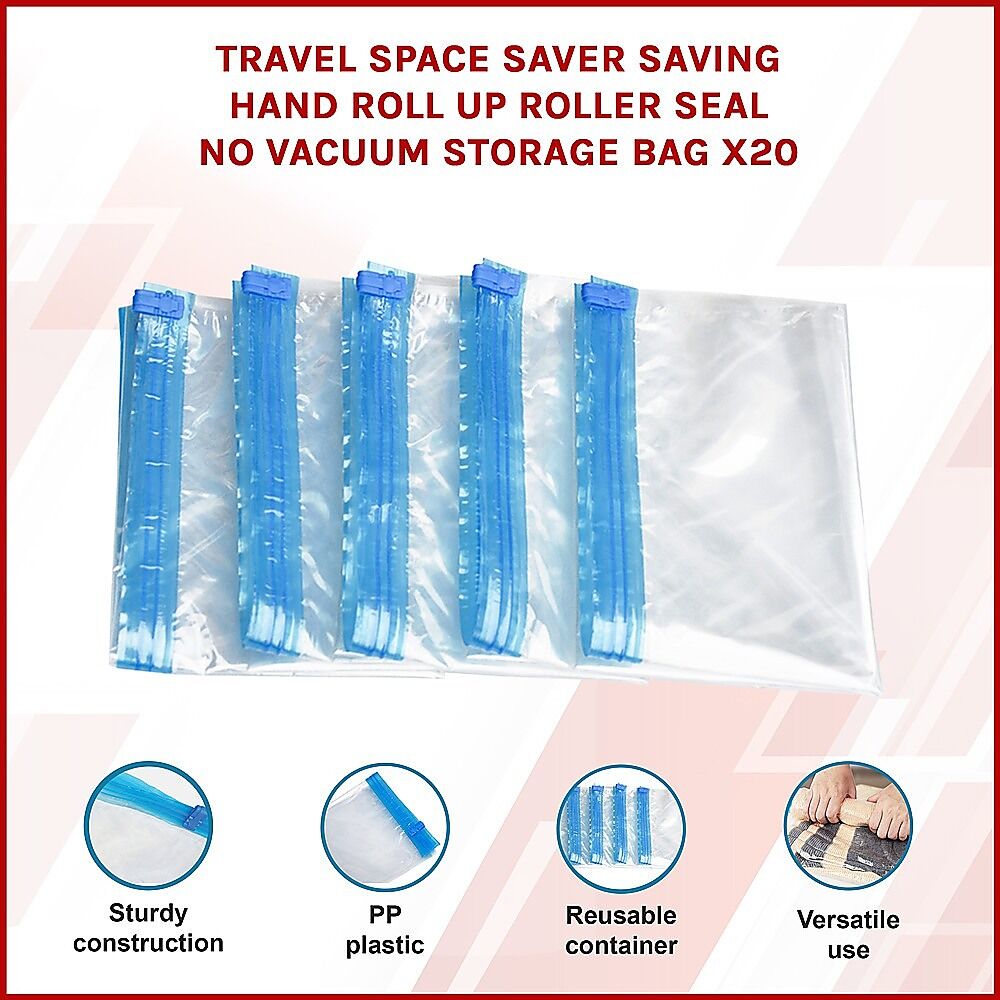 $38.53Easy to useeven without a vacuum cleanerthese space-saving travel roll-up vacuum bags from Randy Travis Machinery will help you pack more into less space when you travel or move. This 20-piece pack features a double zip-lock closure, eliminating the need for a vacuum cleaner. Reuse them over and overthey're designed for durability.