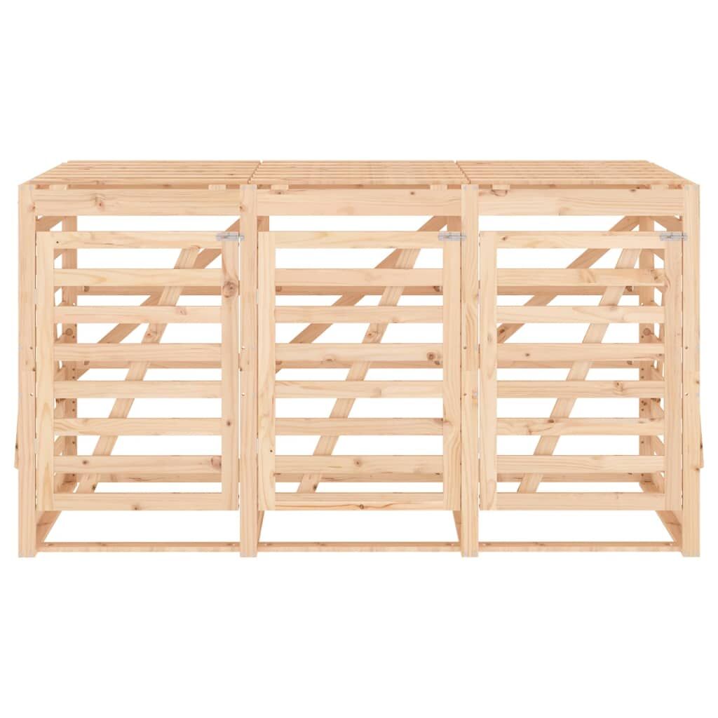 This wooden triple wheelie bin storage keeps the waste bin in your garden out of your sight and creates a beautiful and clean environment. Solid pine wood: The outdoor bin storage is made of solid pine wood for sturdiness and durability. Solid pine wood is a beautiful natural material. Pinewood has a straight grain, and the knots give the material its signature, rustic look.Easy to use: The door and lid make it simple to put trash in and take it out. Also, the garden bin store has latches on the front to keep the doors closed tightly.Ventilation design: Made of wooden slats, the garden bin storage allows air to flow through, stopping bad smells in the bin.Extendable design: You can enlarge your bin shed to accommodate more bins by adding extra extensions. It's available for separate purchase at the store.Flexible door installation: The doors of the wheelie bin shed can be installed on the left or right according to your personal habits and convenience.