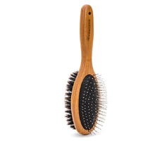 Bamboo double pin and bristle brush. Made with eco friendly bamboo and a stainless-steel edge, rounded ends on the brush making it comfortable and increasing blood circulation. The brush is perfect for Dogs with medium to long fur. Gently remove dirt and dead fur leaving your pets coat soft and shiny.