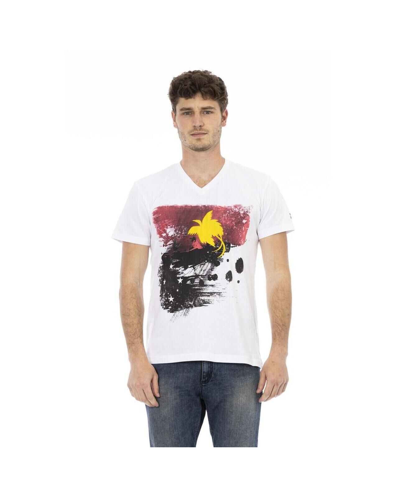 Trussardi Action Men's Elegant White V-Neck Tee with Front Print