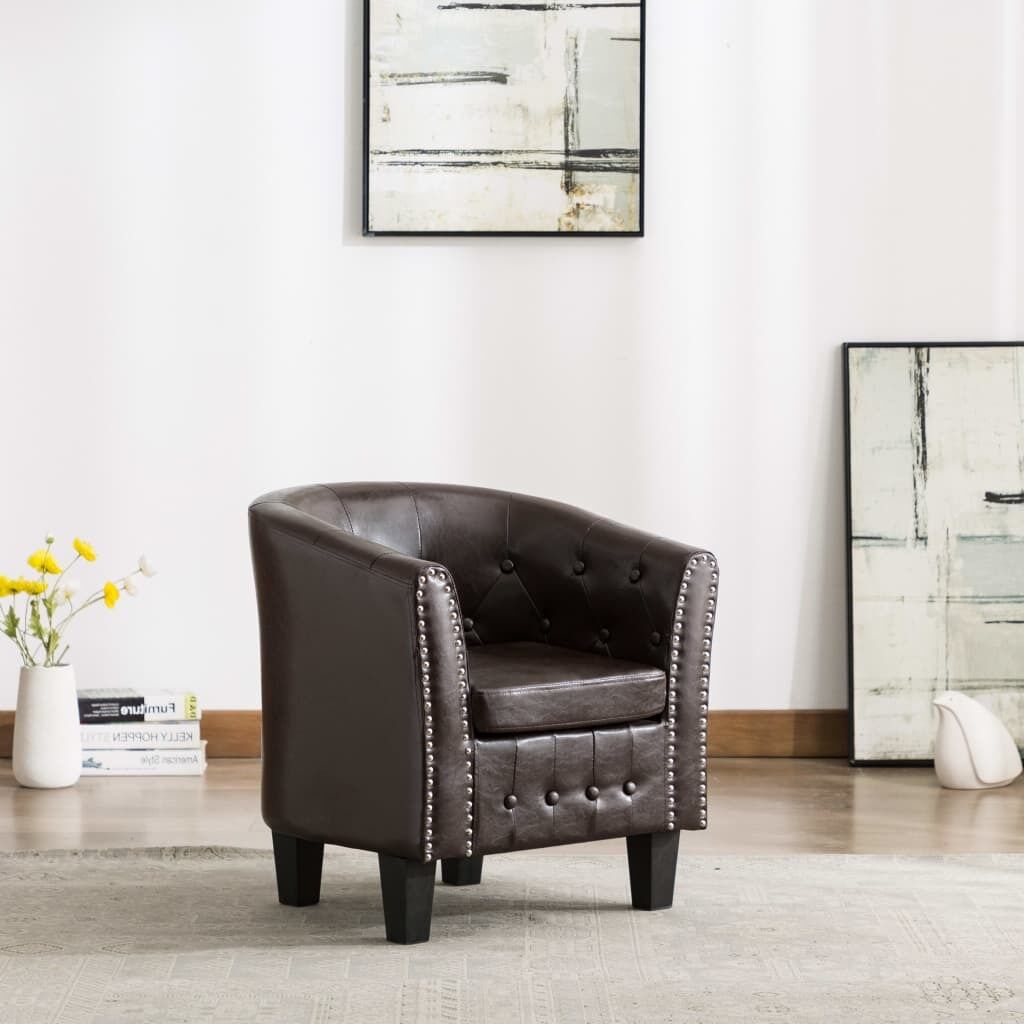 $199.27What can be better than relaxing in a comfortable armchair at the end of a busy day? Our chesterfield tub chair will be the first thing you want to head for after a long day. The tub chair is upholstered in faux leather, which makes it easy to clean and durable. The solid wooden frame makes the sofa chair sturdy and stable. Thanks to the thickly padded seat, backrest and armrests, the armchair is the perfect place for reading, chatting, or just relaxing. The sofa chair is easy to assemble.