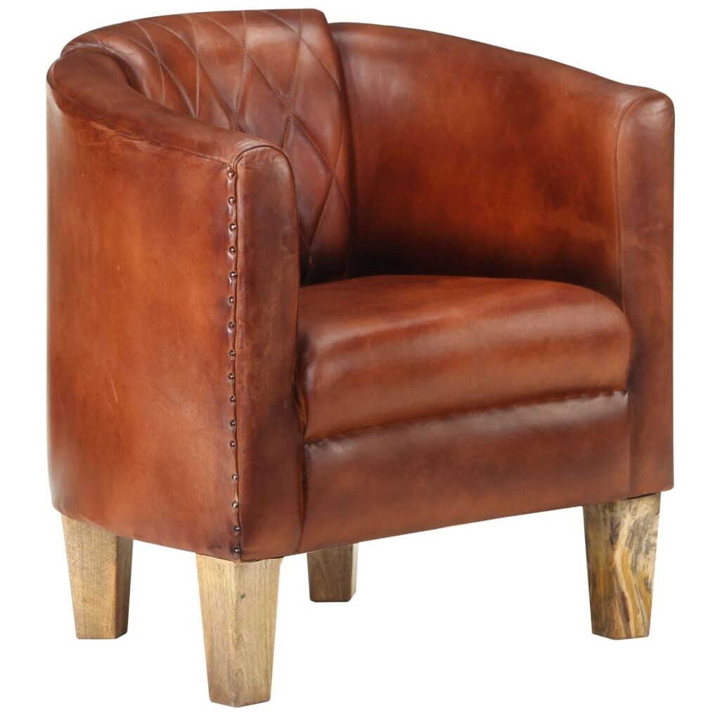 This luxurious tub chair, with a stylish design, is meant to be an eye-catcher in any room. It makes a perfect seating solution for your family to chat, read, watch TV or just relax. The sofa chair is upholstered in soft real leather. It is also thickly padded for comfort. The solid mango wood legs are sturdy and durable. Additionally, this relax chair is easy to clean and hardwearing. Important note: Colours vary from piece to piece, making each piece unique; the delivery is random. 321867, 321869, HR22-VX-90503, HR22-VX-90504