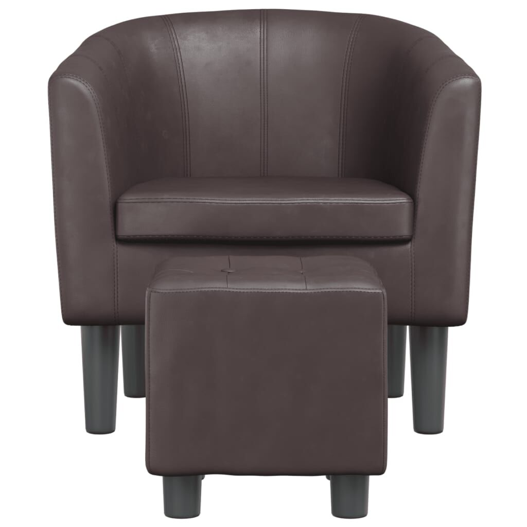 This modern tub chair with footstool will add a touch of elegance to your living room, bedroom, guest room, or office! Durable material: Premium PU leather is an exceptionally durable material. It is resistant to stain, making it easy to clean with a damp cloth. The smooth surface gives a stylish look and the beauty of real leather. Sturdy and stable frame: The frame of this armchair is made of plywood and pinewood to ensure sturdiness and stability.Practical footstool: The footstool is suitable for resting your feet or offering you an additional seat in your room. Additionally, the simple design and compact size make it ideal for almost all your living spaces.Comfortable seat experience: This bedroom chair is highly comfortable with its thickly padded seat, backrest, and armrests. It is the ideal choice for you to fully relax while reading, chatting, watching TV, or listening to music.