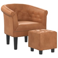 This modern tub chair with footstool will add a touch of elegance to your living room, bedroom, guest room, or office! Durable material: Premium PU leather is an exceptionally durable material. It is resistant to stain, making it easy to clean with a damp cloth. The smooth surface gives a stylish look and the beauty of real leather. Sturdy and stable frame: The frame of this armchair is made of plywood and pinewood to ensure sturdiness and stability.Practical footstool: The footstool is suitable for resting your feet or offering you an additional seat in your room. Additionally, the simple design and compact size make it ideal for almost all your living spaces.Comfortable seat experience: This bedroom chair is highly comfortable with its thickly padded seat, backrest, and armrests. It is the ideal choice for you to fully relax while reading, chatting, watching TV, or listening to music.