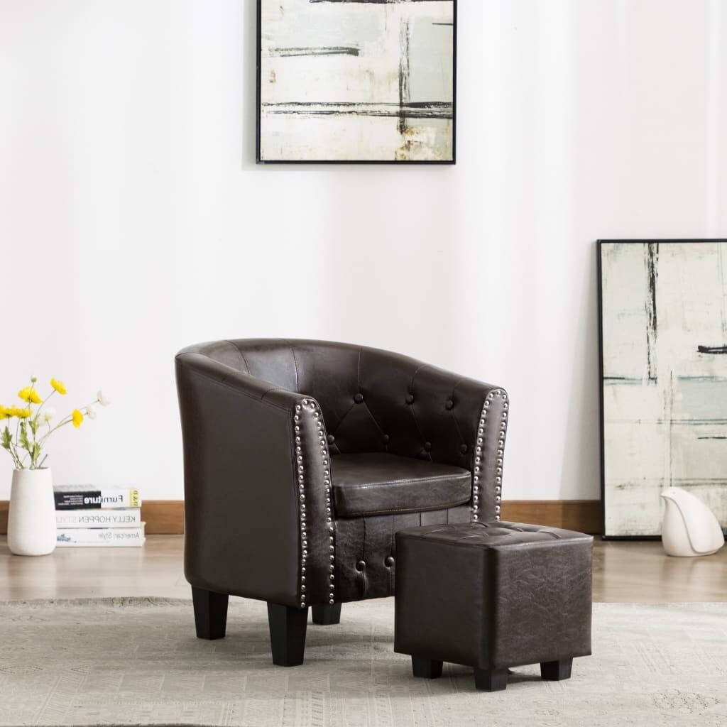 $229.35What can be better than relaxing in a comfortable armchair at the end of a busy day? Our chesterfield tub chair with footstool will be the first thing you want to head for after a long day. The tub chair is upholstered in faux leather, which makes it easy to clean and durable. The solid wooden frame makes the sofa chair sturdy and stable. Thanks to the thickly padded seat, backrest and armrests, the armchair is the perfect place for reading, chatting, or just relaxing. The sofa chair is easy to assemble. Additionally, the footrest will also bring you extra sitting comfort. Delivery includes 1 armchair and 1 footrest.