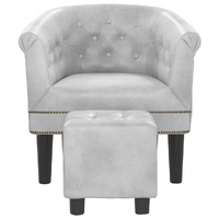 This modern tub chair with footstool will add a touch of elegance to your living room, bedroom, guest room, or office! Durable material: Premium PU leather is an exceptionally durable material. It is resistant to stain, making it easy to clean with a damp cloth. The smooth surface gives a stylish look and the beauty of real leather. Sturdy and stable frame: The frame of this armchair is made of plywood and pinewood to ensure sturdiness and stability.Practical footstool: The footstool is suitable for resting your feet or offering you an additional seat in your room. Additionally, the simple design and compact size make it ideal for almost all your living spaces.Comfortable seat experience: This bedroom chair is highly comfortable with its thickly padded seat, backrest, and armrests. It is the ideal choice for you to fully relax while reading, chatting, watching TV, or listening to music.