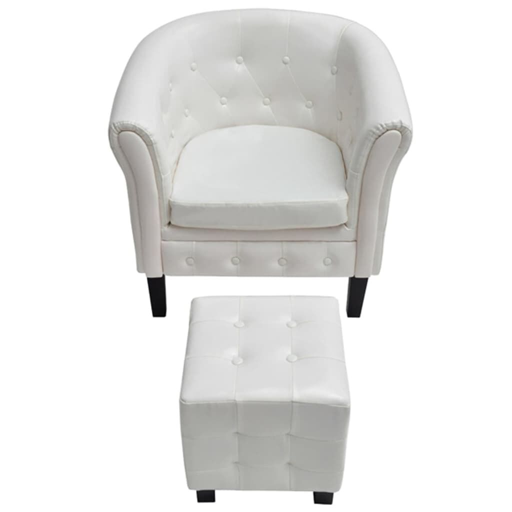 This tub chair and stool set will create an elegant ambiance in all waiting and reception areas, offices and private residential areas. With its tufted and studded detailing and gracefully curved arms, this armchair and footrest set will add a touch of luxury, class and style to any interior. The thickly padded seat is highly comfortable, while the wooden structure is sturdy and durable. The quality artificial leather upholstery is easy to clean and hardwearing.