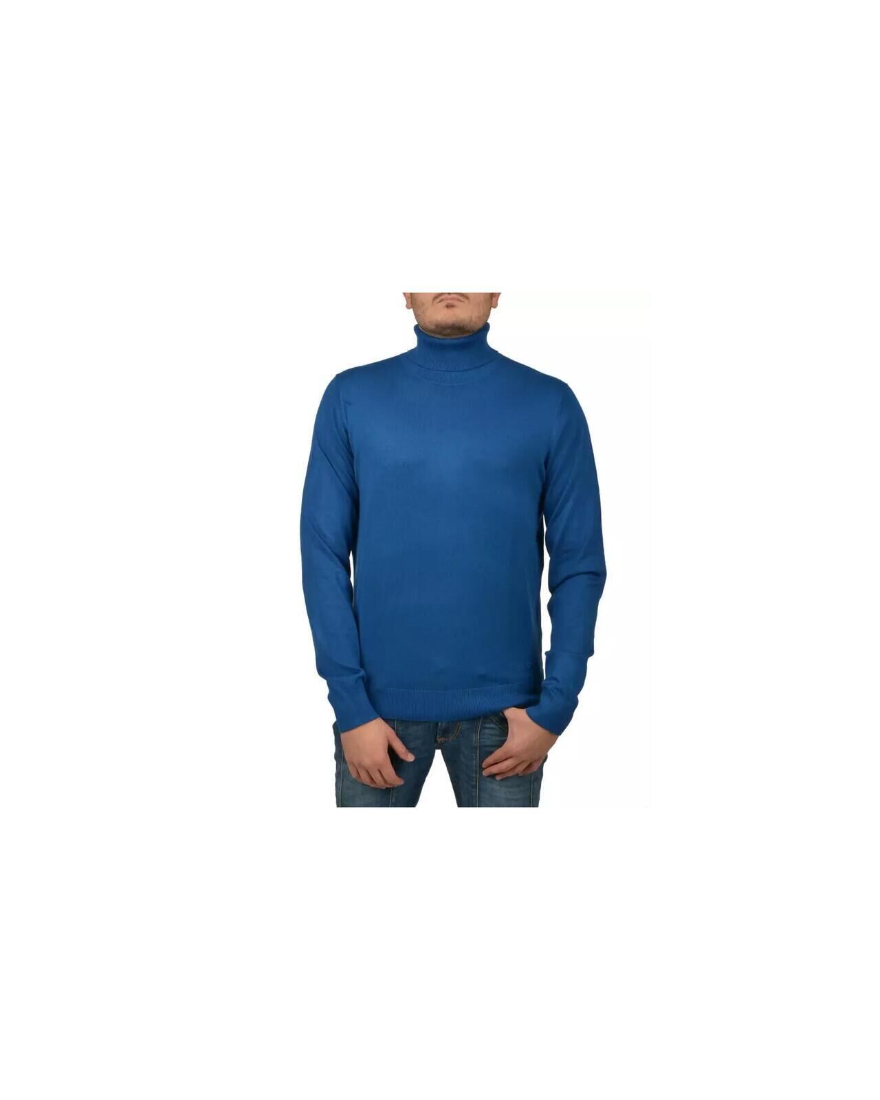 Turtleneck Sweater with Logo Detail in China Blue Men