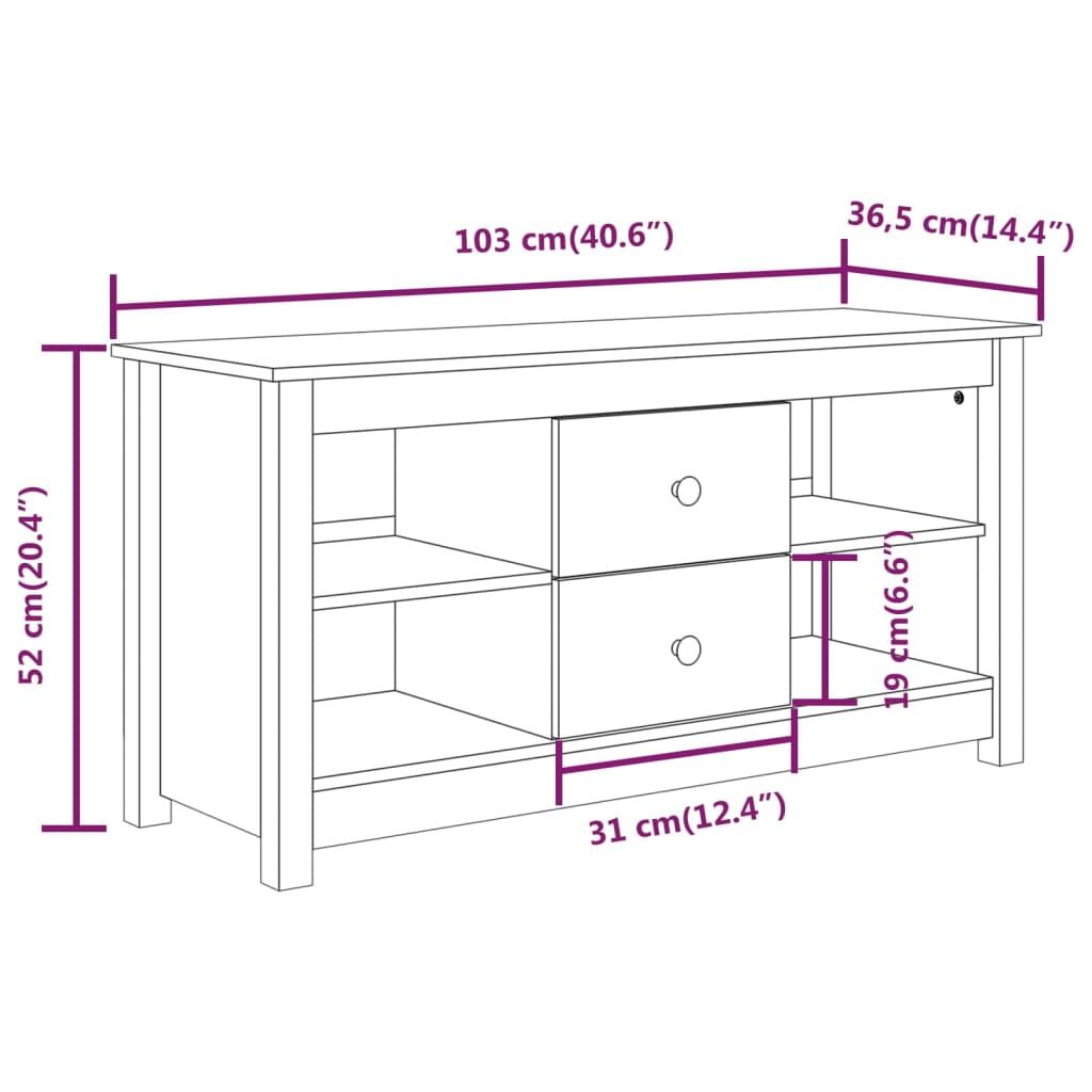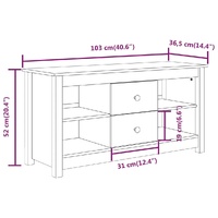 This trendy wooden TV cabinet, featuring a sleek and stylish design, is meant to be a decorative as well as practical addition to your room decor. Solid pine wood: Solid pine wood is a beautiful natural material. Pine wood has a straight grain, and the knots give the material its signature, rustic look.Stable frame: The wooden frame ensures sturdiness and stability.Ample storage space: The TV unit has 2 drawers and 4 open compartments, offering sufficient storage space to keep your essentials well organised and within reach.Displaying function: The sturdy top is a perfect spot for displaying potted plants, framed photos and other decorative items. WARNING:In order to prevent overturning, this product must be used with the wall attachment device provided. Note:Each product comes with an assembly manual in the box for easy assembly.