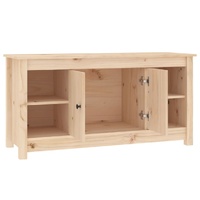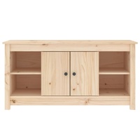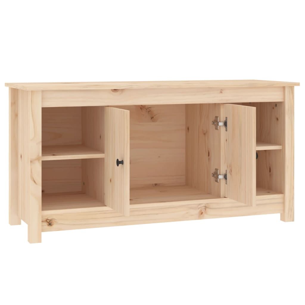 This trendy wooden TV cabinet, featuring a sleek and stylish design, is meant to be a decorative as well as practical addition to your room decor. Solid pine wood: Solid pine wood is a beautiful natural material. Pine wood has a straight grain, and the knots give the material its signature, rustic look.Stable frame: The wooden frame ensures sturdiness and stability.Ample storage space: The TV unit has 1 big compartment with 2 doors and 4 small open compartments, offering sufficient storage space to keep your essentials well organised and within reach.Displaying function: The sturdy top is a perfect spot for displaying potted plants, framed photos and other decorative items. WARNING:In order to prevent overturning, this product must be used with the wall attachment device provided. Note:Each product comes with an assembly manual in the box for easy assembly.