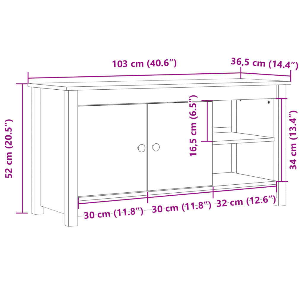 This trendy wooden TV cabinet, featuring a sleek and stylish design, is meant to be a decorative as well as practical addition to your room decor. Solid pine wood: Solid pine wood is a beautiful natural material. Pine wood has a straight grain, and the knots give the material its signature, rustic look.Stable frame: The wooden frame ensures sturdiness and stability.Ample storage space: The TV unit has 1 large compartment with 2 doors and a shelf, offering sufficient storage space to keep your essentials well organised and within reach.Displaying function: The sturdy top is a perfect spot for displaying potted plants, framed photos and other decorative items. WARNING:In order to prevent overturning, this product must be used with the wall attachment device provided. Note:Each product comes with an assembly manual in the box for easy assembly.