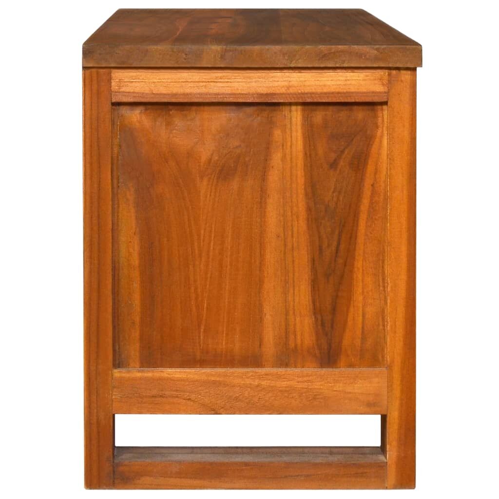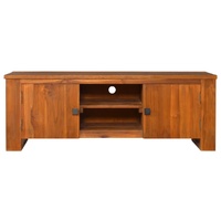 Featuring a trendy yet practical design, this colonial-style wooden TV cabinet is meant to be a focal point of your room. This rustic TV cabinet is made of solid teak wood, providing sturdy and durable base support. Natural oil finish keeps a smooth surface, making it not easily scratched and easy to maintain and regular care. It has 2 small inside cabinets with doors for storing knick-knacks and 2 compartments for keeping multimedia appliances, gaming consoles, CD and magazines, ect. Also, this TV cabinet doesn't need to assemble. Teak wood is known for its exceptional strength, making it far more suitable for furniture than any other kind of wood. Teak wood is the perfect choice if you want to purchase a long-lasting piece of furniture.