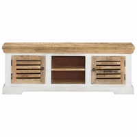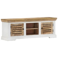 This wooden TV cabinet exudes a rustic charm. It will make a real attention-grabbing addition to your interior. The sideboard is made of solid mango wood, a hardwood with dense grains. Mango wood not only has the strength to bear the weight, but also stands the wear and tear of time. As a consequence, this beautifully-designed lowboard is exceedingly stable, durable and aesthetically-appealing. Additionally, this stereo cabinet is fully handmade and the exquisite wood grains enable every piece of furniture distinctive and slightly different from each other. This HiFi cabinet features 2 cabinets with doors and 2 compartments, providing commodious space for storing your multimedia appliances, books, shoes, as well as various other items. Important note: The wood grains vary from piece to piece, making each piece unique. The delivery is random, ensuring the exclusivity and individuality of your product.