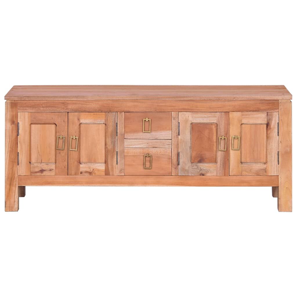 The unique wooden TV cabinet is specially designed for your bedroom and living room! This TV stand, made of solid mahogany wood, is stable and durable. Mahogany with a straight and even grain is relatively free of voids and resists wood rot. Its reddish-brown colour darkens over time and displays a reddish sheen when polished. The craftsmanship and the beautiful wood grains make every piece of furniture unique and slightly different from the next. This media unit also features 2 drawers and 4 doors, providing ample storage space for keeping your essential items organised and within reach. Important note: Colours and grains vary from piece to piece, making each piece unique. The delivery is random as well.