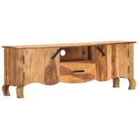 This solid wooden cabinet will make a decorative as well as practical addition to your decor. This cabinet is made of solid wood and can also be used as a sideboard or storage cabinet. Every step of the process is carried out with the greatest care, be it polishing or lacquering. The craftsmanship and the beautiful wood grains make every piece of furniture unique and slightly different from the next. This cabinet has a sturdy top, on which you can place decorative items like fruit baskets or vases. Designed with 1 compartment, 1 drawer and 2 doors, this TV cabinet offers you ample space to keep your DVDs, multimedia devices or other small items well organised and within reach. Its wooden legs add to its sturdiness as well as its mid-century modern design. The TV cabinet is easy to assemble. Important note: Colours and grains may vary from piece to piece, making each of our TV cabinets unique. The delivery is random, ensuring the exclusivity and individuality of your product.